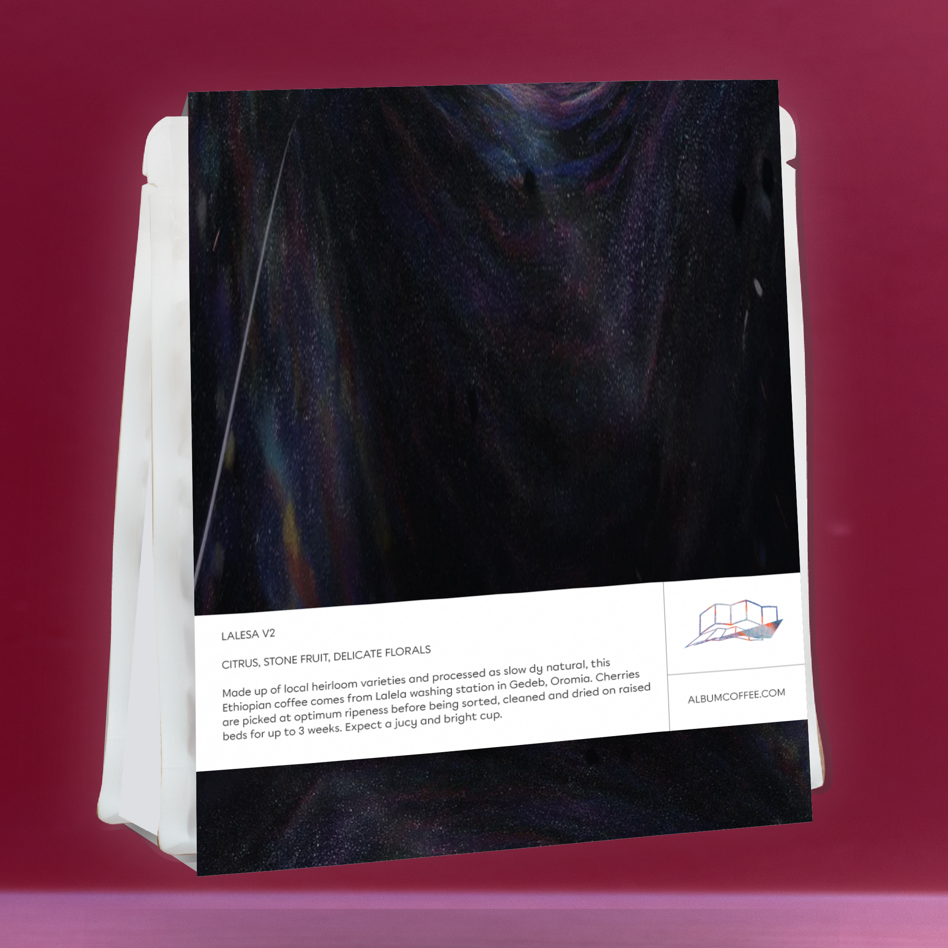Made up of local heirloom varieties and processed as slow dry natural, this Ethiopian coffee comes from Lalesa washing station in Gedeb, Oromia. Cherries are picked at optimum ripeness before being sorted, cleaned and dried on raised beds for up to 3 weeks. Expect a juicy and bright cup.