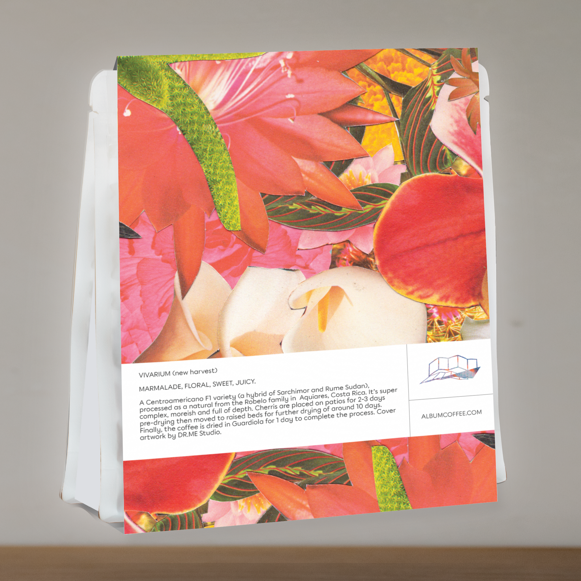 A Centroamericano F1 variety (a hybrid of Sarchimor and Rume Sudan), processed as a natural from the Robelo family in Aquiares, Costa Rica. It’s super complex, moreish and full of depth. Cherries are placed on patios for 2-3 days pre-drying then moved to raised beds for further drying of around 10 days. Finally, the coffee is dried in guardiola for 1 day to complete the process. Cover artwork by DR.ME Studio.